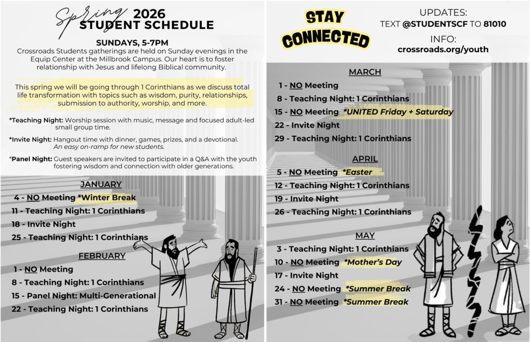 This year, students from over 30 churches will gather for a weekend packed with powerful worship, engaging sessions, and tons of fun! What makes this even more unique for Crossroads Students is that we'll be staying at New Life Camp for a 2-night retreat-style weekend, enjoying modern cabin lodgings, access to activity fields and the Johnson Gym, group games like putt-putt, and more! Then, we’ll wrap up with a special celebration service at each campus on Sunday, March 15 at 11am.